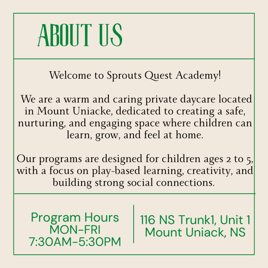 Opening MAY 2026 in Mount Uniacke! Registrations are open for Toddlers and Preschoolers. (2 years -5 years)